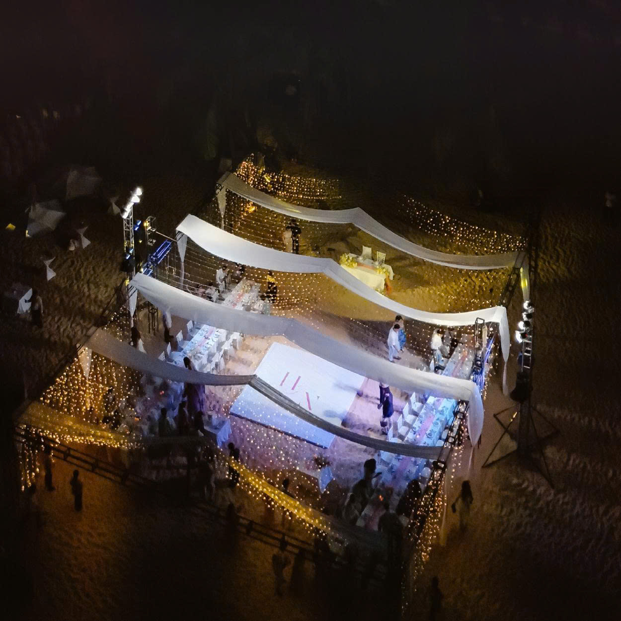 Tiệc tối được tổ chức dưới màn ánh sáng lung linh, đúng như tâm nguyện về sự thân mật của cặp đôi. Với chỉ 80 vị khách, không gian tràn ngập tiếng cười, những bài phát biểu xúc động và tiếng nâng ly chúc mừng. Sự kết hợp giữa tư duy hiện đại của Úc và lòng hiếu khách của Việt Nam đã tạo nên một đêm không thể nào quên.